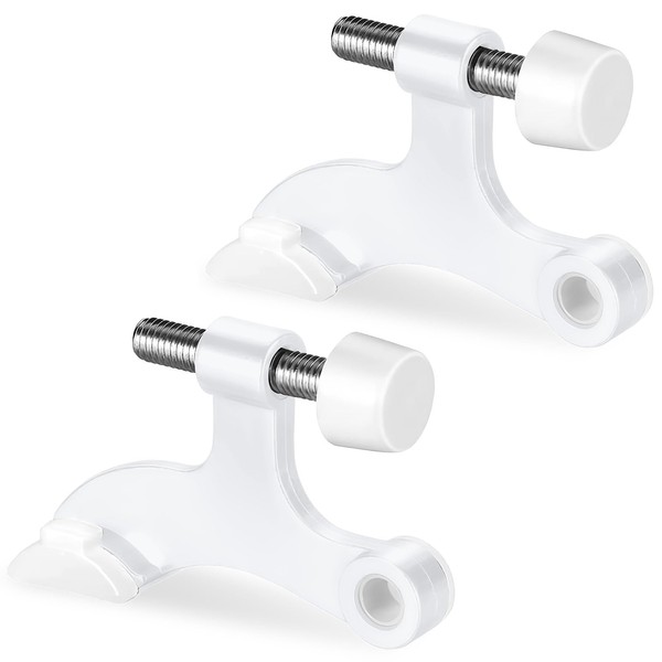 Hinge Pin Door Stopper, 2 Pcs Heavy Duty Hinge Pin Stopper, Adjustable Door Stopper with White Rubber Bumper Tips, Striking Wall Dents from Door Knobs (White)