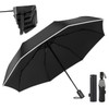 - Durable and strong umbrella ribs that can withstand strong wind and heavy rain: This folding umbrella has 8 sturdy ribs and greatly improved wind resistance and durability. Designed with a combination of lightweight yet sturdy aluminum material and unbreakable fiberglass for a 25% more horizontal strength compared to ordinary umbrellas! Safe to use in heavy rain and strong winds. In addition, if the wind flips, simply press the open and close button to restore it easily, so it is difficult to break and can be used for a long time. This item combines durability and peace of mind and is sure to be a strong ally for rainy days
