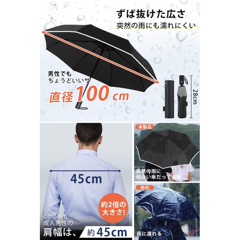 - (One-touch automatic open/close umbrella; Perfect for busy days! A convenient folding umbrella that can be opened and closed automatically with a simple press of a button. It can be used smoothly when getting in or out of a car, holding a child, or when your hands are full of luggage. It is also foldable and perfect for business trips and travel. In addition, if you keep it in your car, you can handle it even in sudden rain. Enjoy the comfort of rainy days with this umbrella that will keep you close to your busy days?