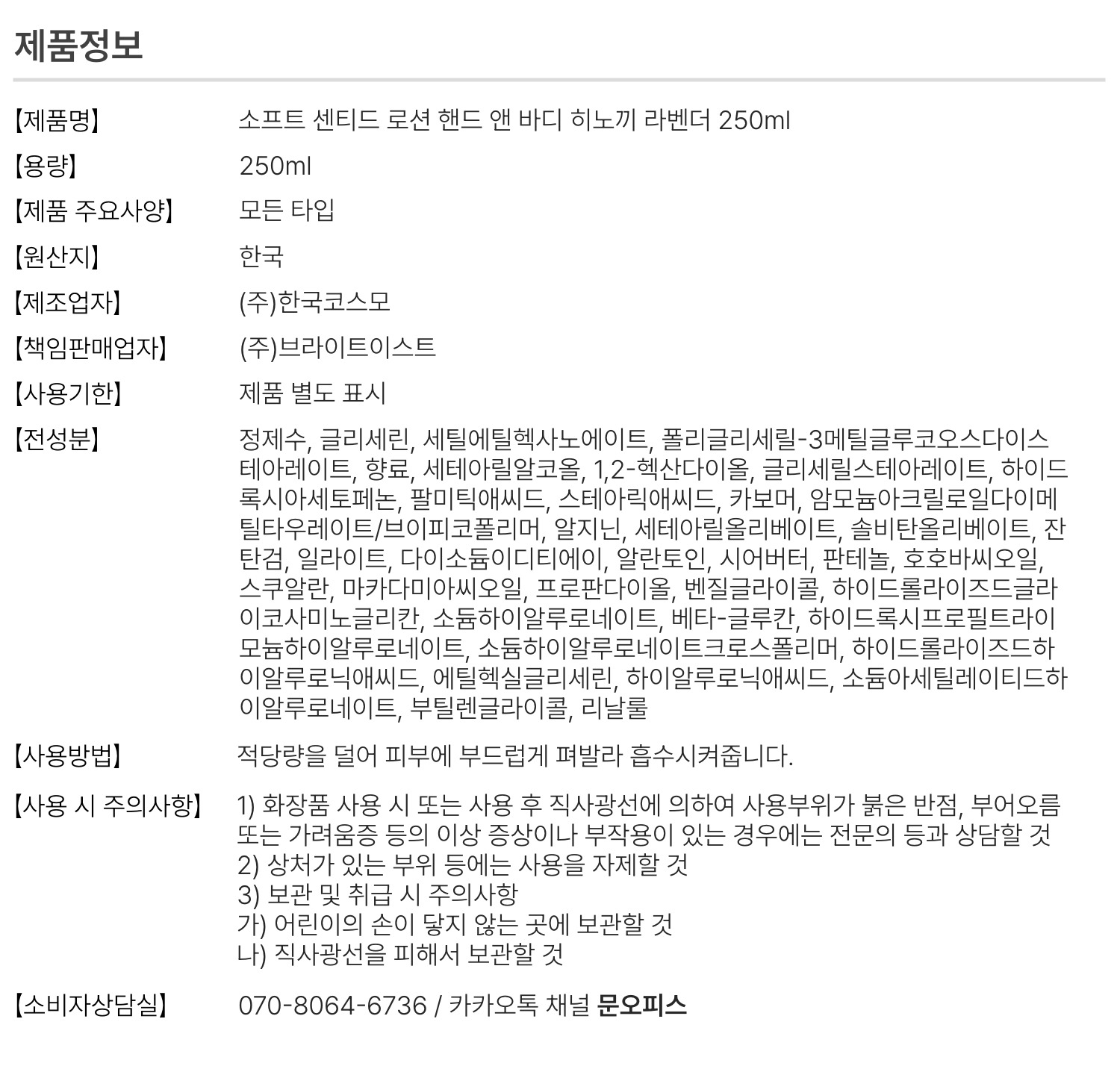 Hinoki Lavender Hand & Body Lotion 250ml / 히노끼 라벤더 핸드&바디 로션 250ml