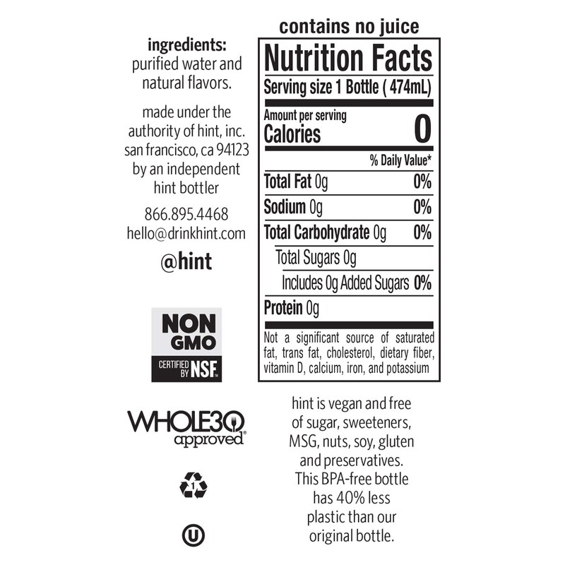 - Better hydration, better health: Staying hydrated can improve your mood, complexion, and muscle and joint health. Hint Water is also vegan, gluten-free, nut-free, non-GMO, and kosher certified. Hint is the perfect way to hydrate deliciously