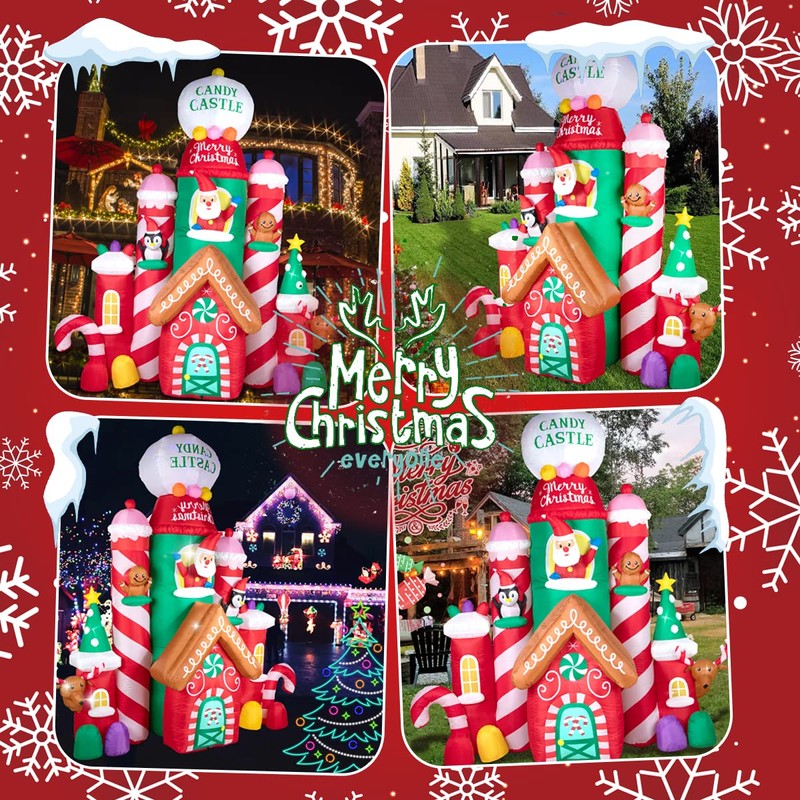 - Great Outdoor Decor - Our Christmas decoration is suitable for yard,outdoor,Christmas Party and etc.When inflate the candy castle in your yard,it’s a excellent gift for children to play around.The festive atmosphere of Christmas will surround your family and spend an unforgettable Christmas!