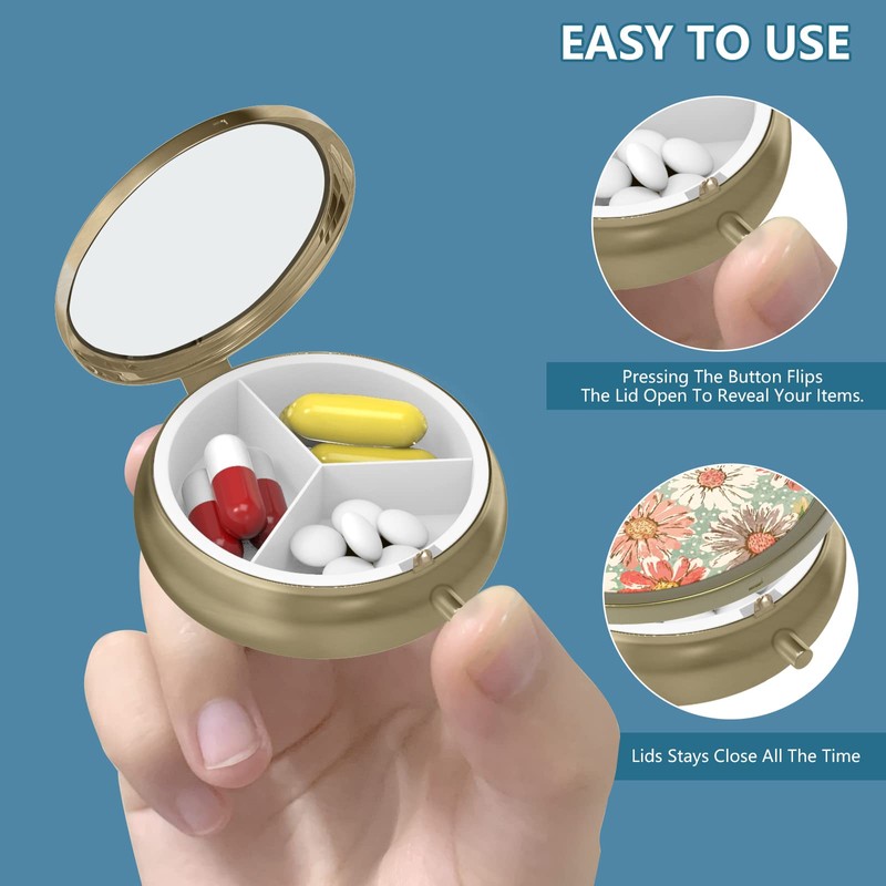 - Vorteilspackung: Sie erhalten 1PCS 3 Fach Bronze kleine roud Pillenbox und 1PCS 2 Fach Bronze kleine rechteckige Pillenbox.Großes Preis-Leistungs-Verhältnis, um Ihre verschiedenen Medikamente Bedürfnisse zu erfüllen, machen gesünder leben einfach einfacher.