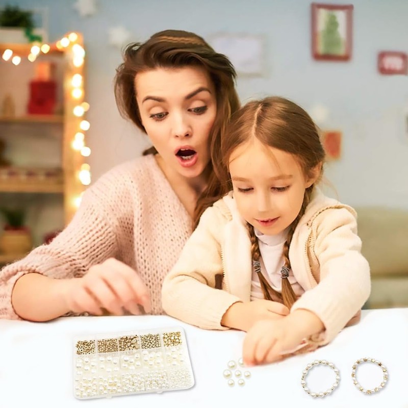 HIOQFR 720 Pieces White Beads for Threading Kit DIY Bracelet Set DIY Jewellery Making Beads Set Bracelets Spacer Beads Golden Bead Chain Set for DIY Craft Bead Jewellery