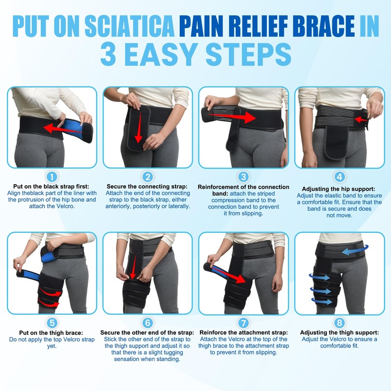 - All-Day Wear & Recovery Aid: Wear this sciatica pain relief brace for several hours during daily activities (avoid during sleep or if it feels too tight). It stays in place during walking, working, and exercising, effectively relieving pain and providing support. As a sciatica pain relief device, it stabilizes surrounding muscles and joints, reducing discomfort at its source and also serves as a groin support during training to prevent muscle strains.