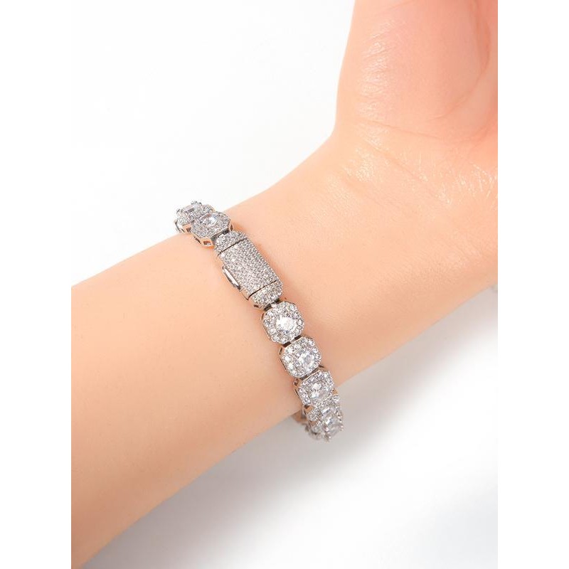 Hip-hop 9mm rock sugar bracelet, copper inlaid zircon hip-hop accessory box buckle bracelet, square sugar zircon men's bracelet accessory, suitable for both men and women:_Silver_7Inch Rock Sugar Bracelet