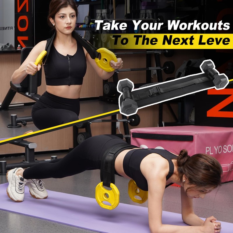 - Easy to use: Simply open the two straps on both sides. Then Loop the straps through dumbbells/kettlebells, secure with Velcro, buckle up the fixed snap, and you're ready to start!