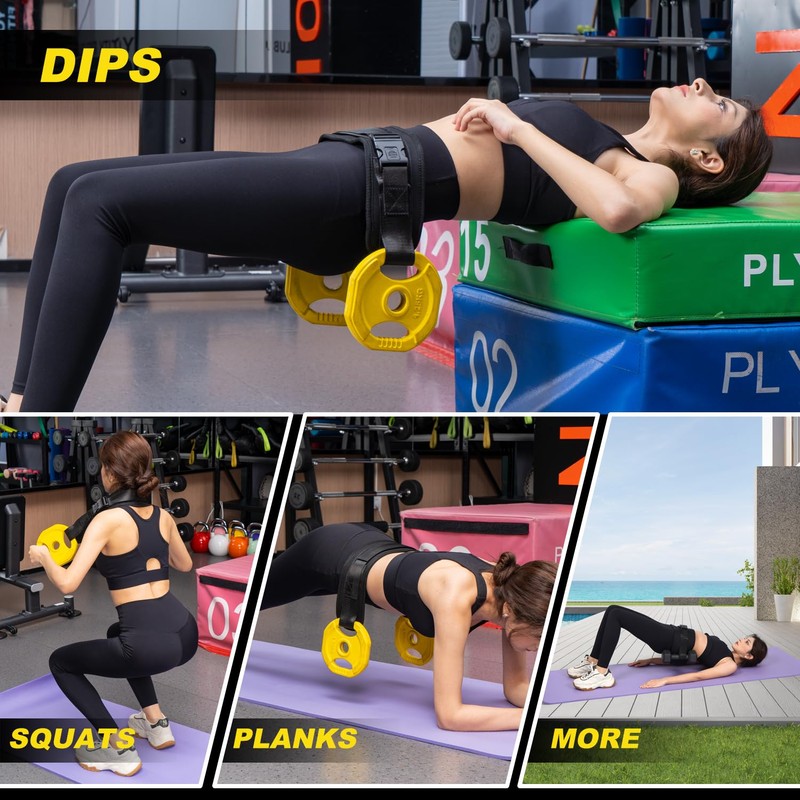 - Versatile and Personalized Fit: Our hip thrust belt caters to all body types with adjustable double Velcro straps, ensuring a secure and customizable fit. Add weights to enhance your routine, including lunges, glute bridges, dips, and more.