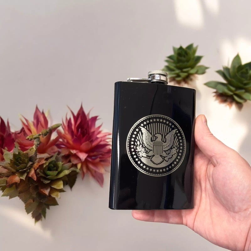 HipFlaskPlus 8oz Presidential Seal Black Flask