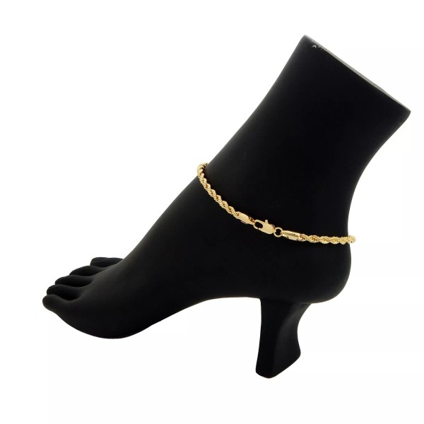 Hiphopstylist Twisted ROPE CHAIN ANKLET BRACELET 3mm 9.75" inch 14K ITALY GOLD PLATED