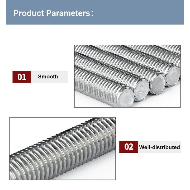 Fully Threaded Design - Neat and clear thread, exquisite workmanship, entire threaded design, allowing for a secure connection on both ends, which makes it great for applications where the rod needs to be fully engaged with nuts or other fasteners.