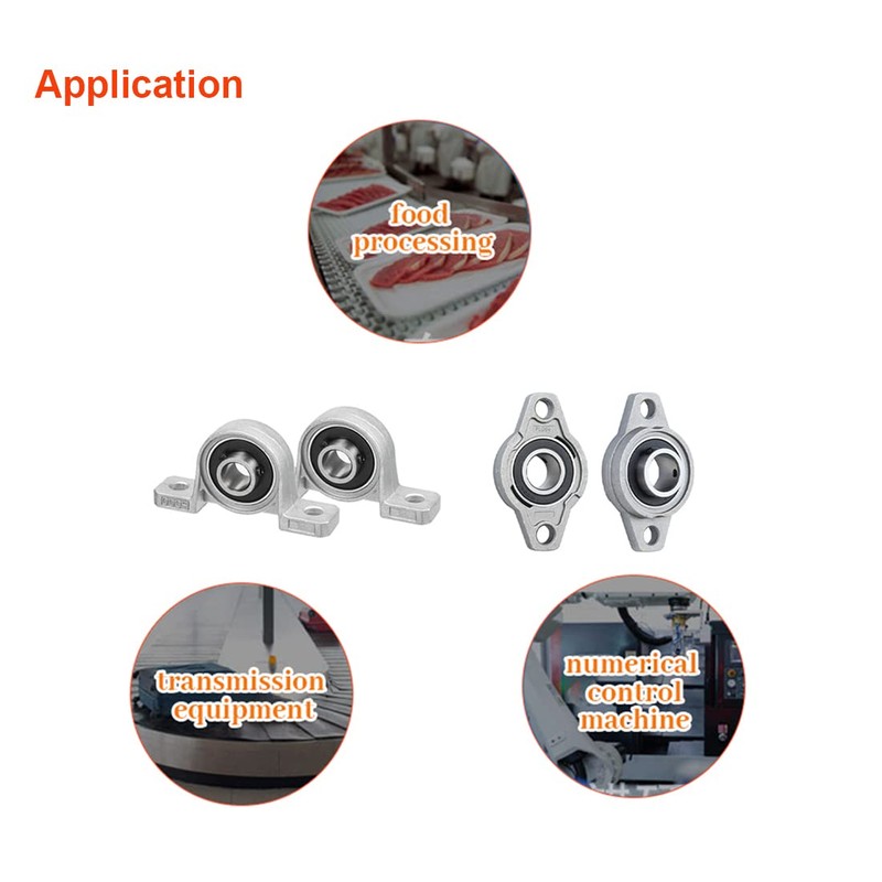 - APPLICATION: Widely used in various of machinery, power, mining, metallurgy, textile, agriculture and other industries, especially in food machine. The pillow block can also be used into conveyring systems, film processing machinery, spin machine and printing machine.