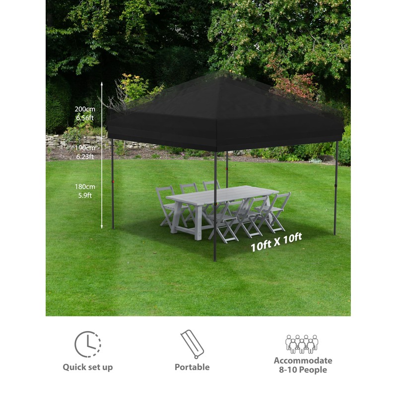 - 100 SQUARE FEET OF SHADE: 10 x 10 ft pop-up canopy tent offers 100 square feet of shade space, providing enough room for tables and chairs. It offers ample space for activities while protecting you from wind and rain.