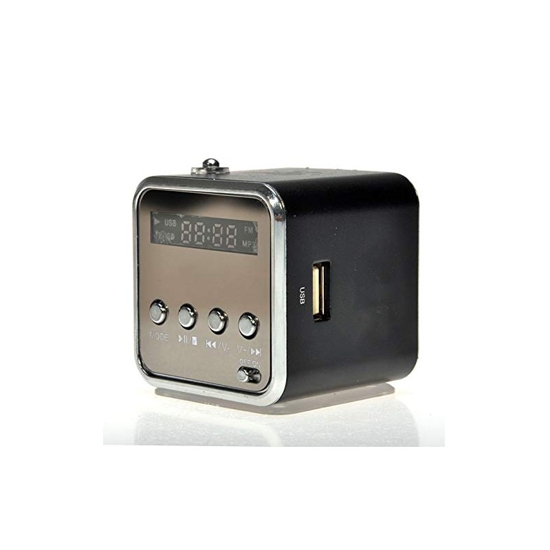 Description: Bluetooth Portable mini digital speaker Popular and stylish in design Compact and user-friendly Good sound quality lets you indulge in your favorite music You can also listen to FM radio Built-in rechargeable battery Multi-color flashing LED at the base of the speaker Support USB, Micro SD and TF cards for playing MP3 songs Support audio line-in with audio cable Function Buttons: on/off, menu, previous song, next song, play/pause, volume control LED display panel