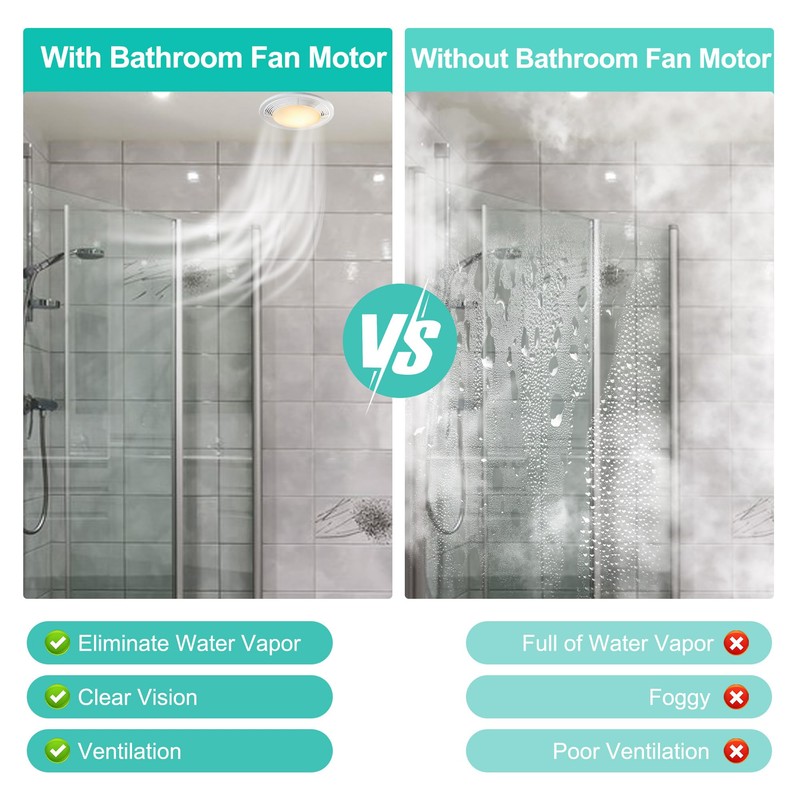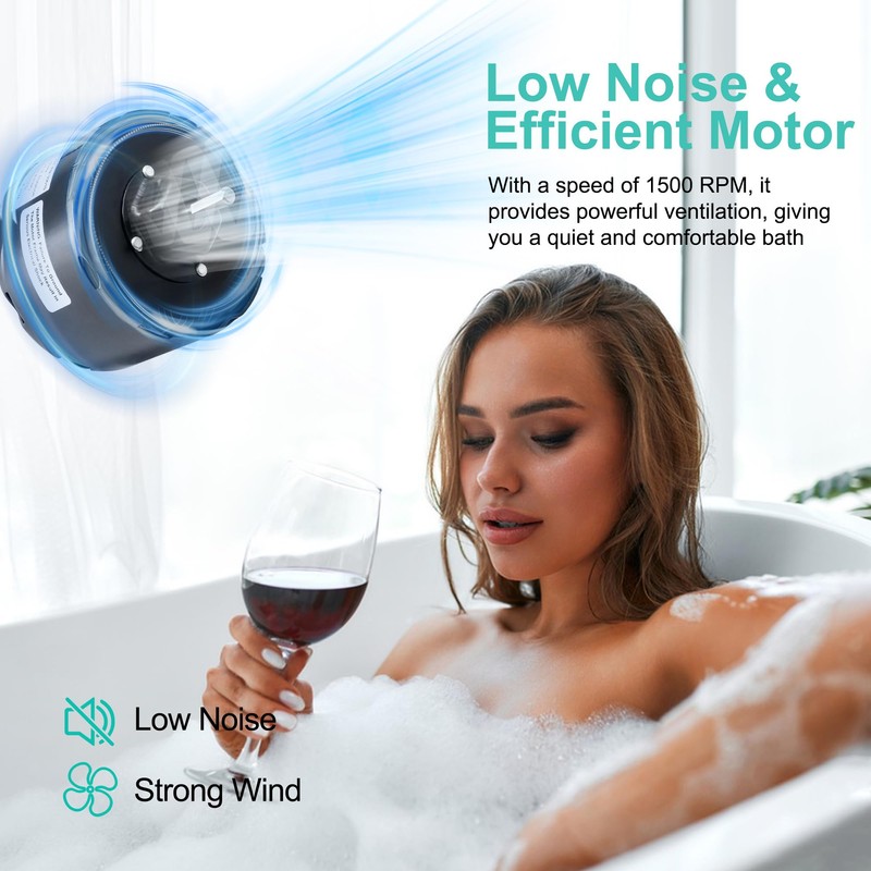 - Low Noise - The bathroom fan motor adopts sleeve bearings, which makes it run smoothly and provides a strong wind to ensure low noise operation, so you can enjoy a comfortable bath time