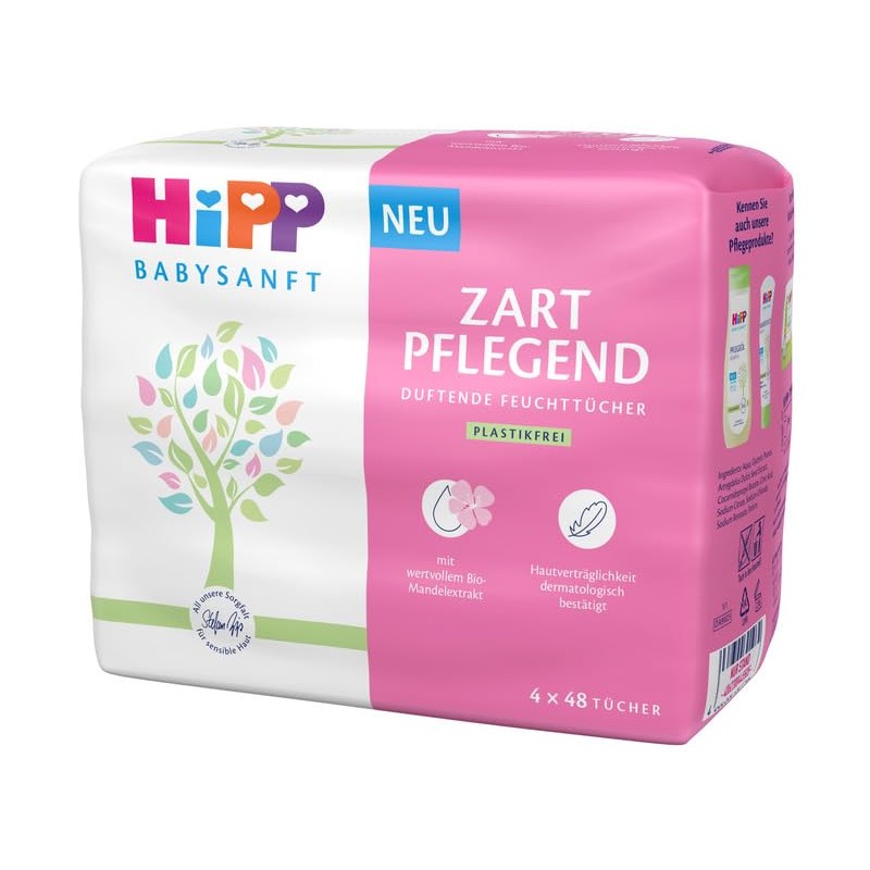 HiPP Babysanft Wet Wipes, Soft Nourishing, 4 x 48 Pieces