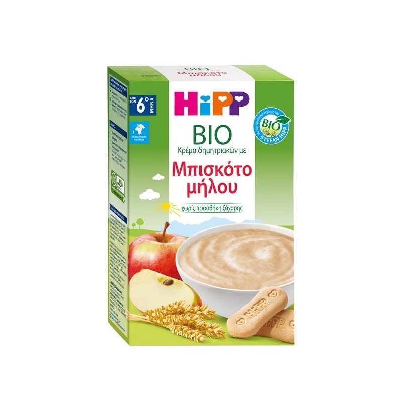 Hipp Bio Cereal Cream with Apple Biscuit contains whole grain cereals, biscuits & apple porridge, all organically grown.