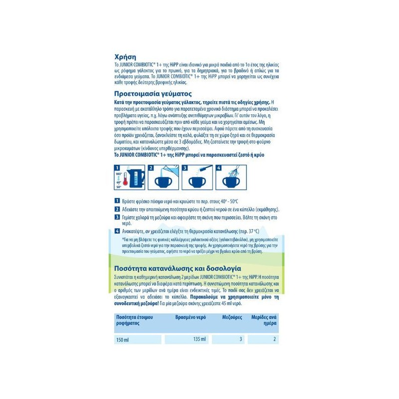 Το Hipp Junior Combiotic 1+ is a nutritious milk powder, specially designed to support the development of young children from the 1st year.