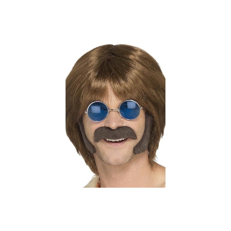- Includes Hippie Disguise Set, Brown with Porkchop Sideburns & Moustache, Self Adhesive
