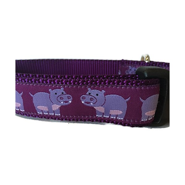 Handmade Hippo Dog Collar – Purple Cartoon Print Adjustable Collar for Medium and Large Dogs – Durable Nylon (Large 15-22")