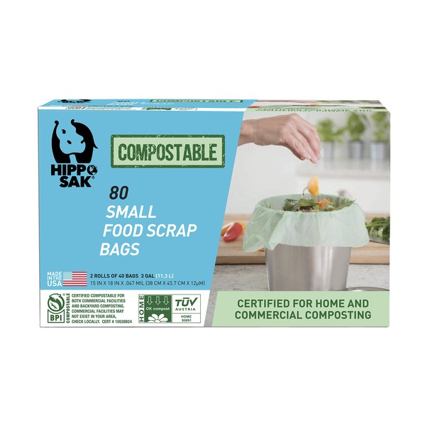 Hippo Sak - Bolsas de basura para alimentos (tamaño pequeño), Verde, 80 Count