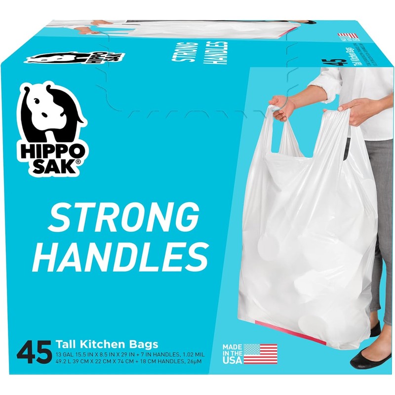 Hippo Sak - Kitchen Trash Bags 13 Gallon - Garbage Bags with Handles - 45 Count