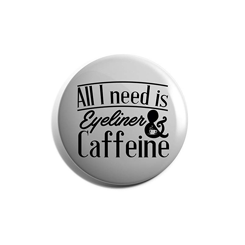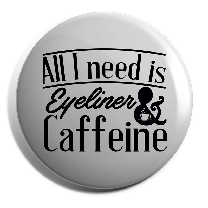 Hippowarehouse All I Need Is Eyeliner & Caffeine Badge Various Sizes 38mm 50mm 75mm