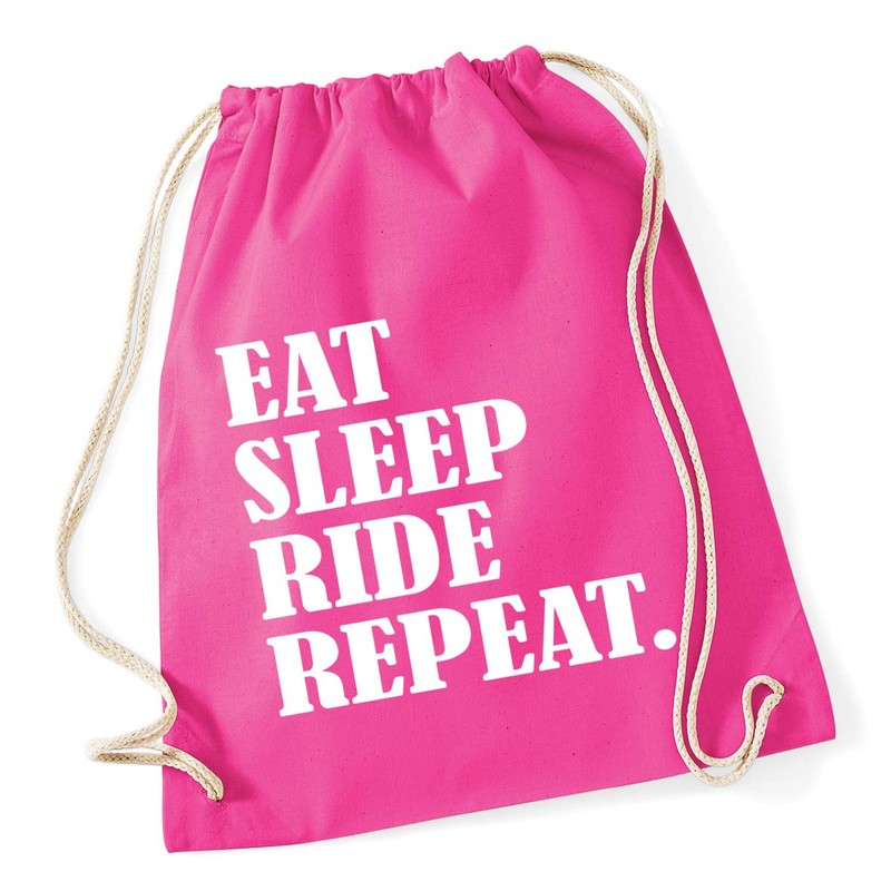 Hippowarehouse Eat Sleep Ride Repeat Horse Riding Drawstring Cotton School Gym Bag 37cm x 46cm, 12 litres