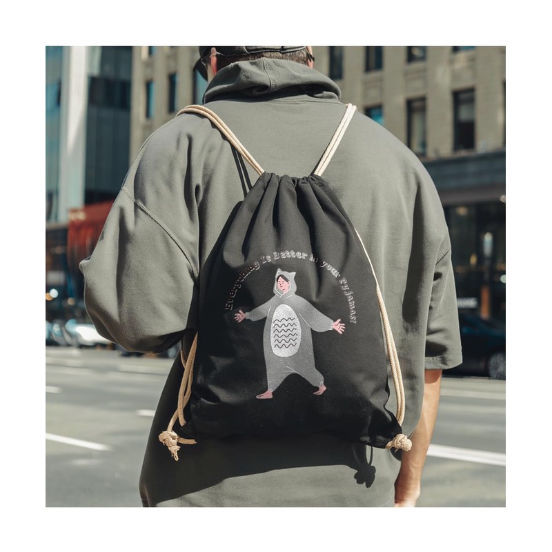 Hippowarehouse Everything is better in your Pyjamas Drawstring Cotton School Gym Bag 37cm x 46cm, 12 litres