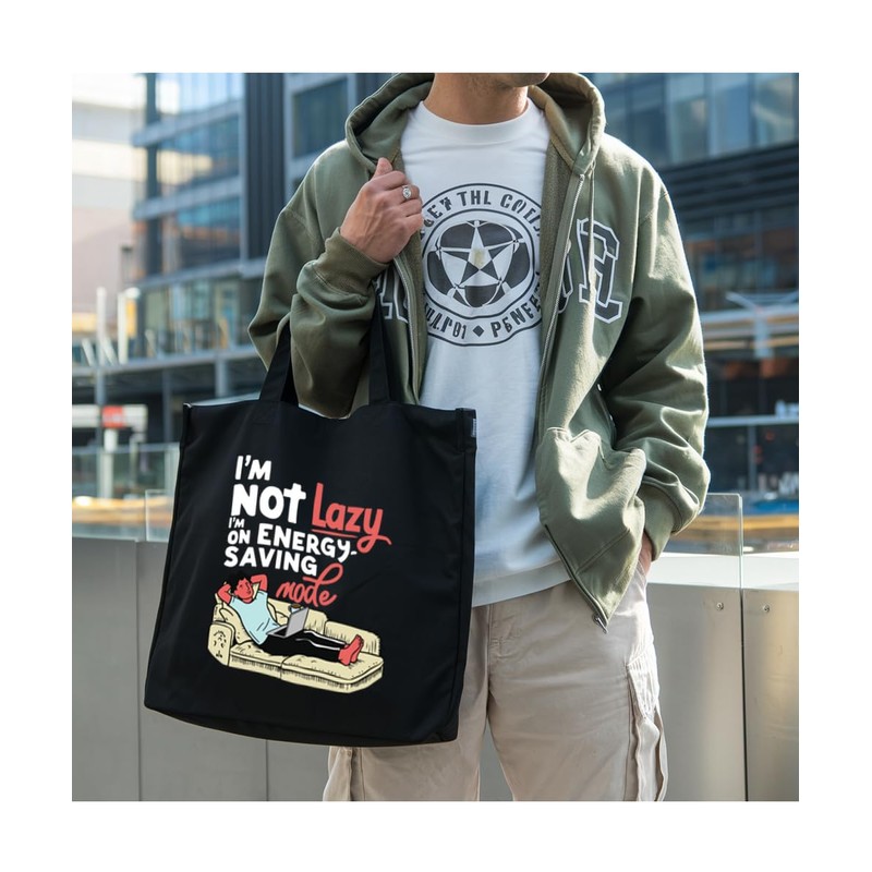 Hippowarehouse I'm not lazy, I'm on energy-saving mode Tote Shopping Gym Beac...