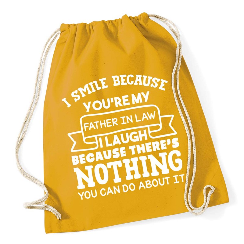 Hippowarehouse I smile because you're my father in law I laugh because there's nothing you can do about it Drawstring Cotton School Gym Bag 37cm x 46cm, 12 litres