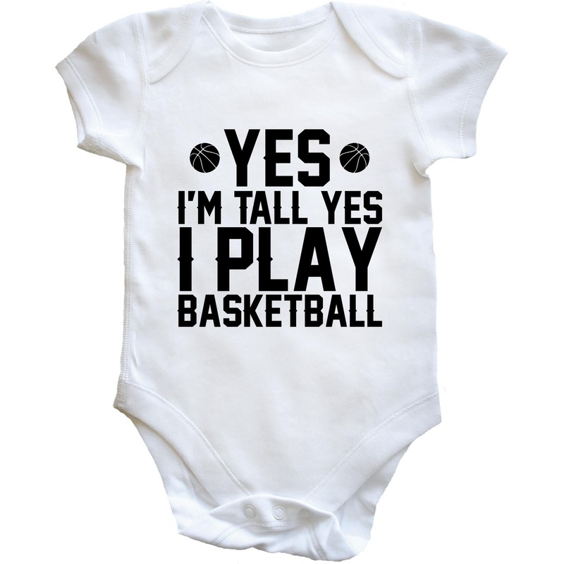 Hippowarehouse Yes I'm tall yes I play basketball baby vest bodysuit (short sleeve) boys girls
