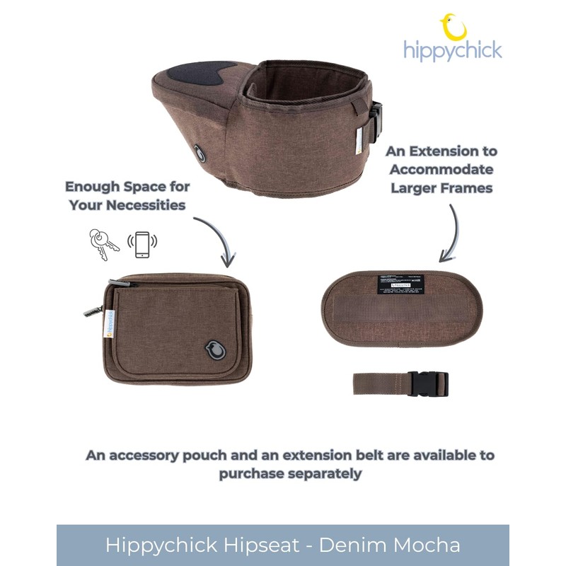 Hippychick Hipseat Baby Carrier, Brown, Lightweight Back-Saving Support Waist Stool, Ergonomic Design, Adjustable Strap, Suitable for Infants from 6 Months to 3 Years, Denim Mocha