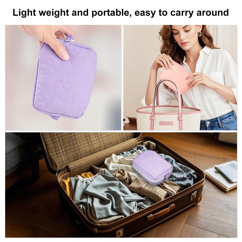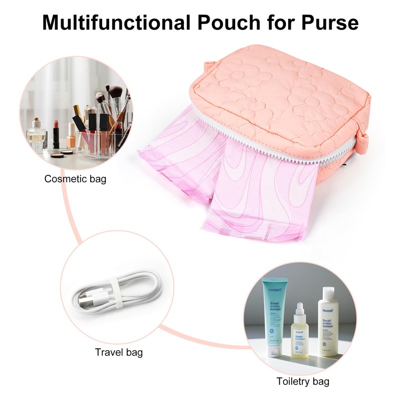 - MULTIFUNCTIONAL STORAGE: The small pouch for feminine products hold tampons, pads, and liners well, can also be used to hold variety of small items, like makeup items, toiletries, hand wipes, suitable for daily use