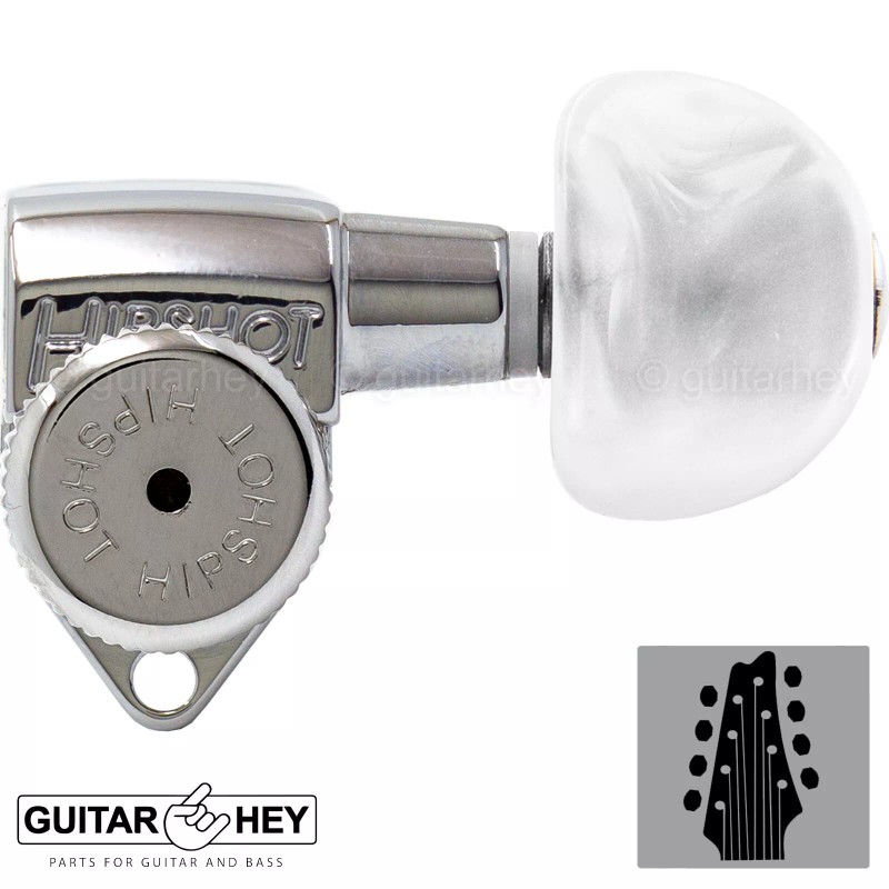 Hipshot NEW Hipshot 8-String Grip-Lock LOCKING TUNERS Moon PEARL Buttons 4x4 Set CHROME