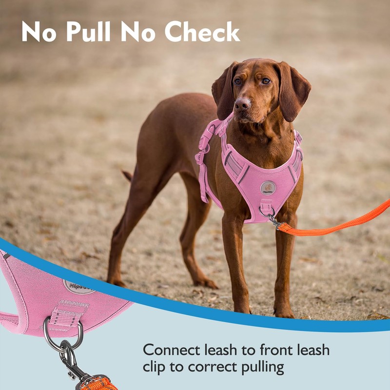 - No Pull, No Choke - Safe & Stress-Free Walks - Our no-pull dog harness features 2 reinforced metal leash rings for better control and comfort. Use the chest attachment clip to stop your dog from pulling on walks, perfect for dog training or dogs who tend to pull. The back one is great for casual walks, jogging, hiking, etc
