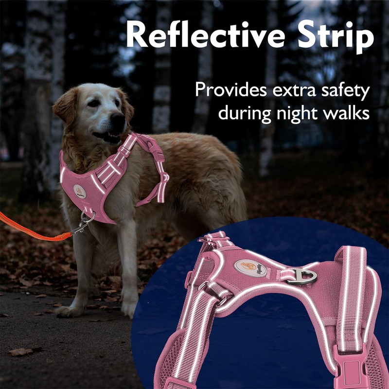 Hipubby Dog Harness Medium Sized Dog, No Pull Pet Harness with 2 Metal Rings and Control Handle, Adjustable Soft Dog Vest with Reflective Strips, Easy Walking and Training for Medium Dogs, Pink, M