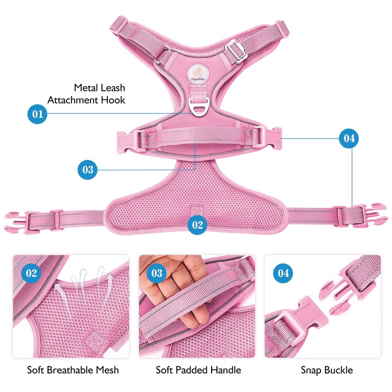 Hipubby Dog Harness Medium Sized Dog, No Pull Pet Harness with 2 Metal Rings and Control Handle, Adjustable Soft Dog Vest with Reflective Strips, Easy Walking and Training for Medium Dogs, Pink, M