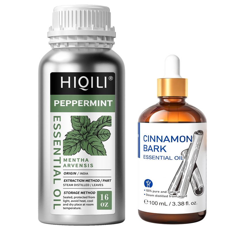HIQILI HIQILI 3.38 Fl Oz Cinnamon Essential Oil and 16 Fl Oz Peppermint Essential Oil, 100% Pure Natural for Diffuser