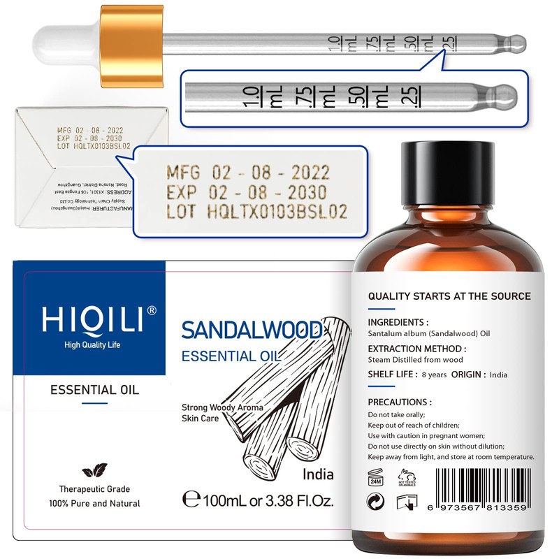 HIQILI HIQILI Grapefruit Essential Oil and Sandalwood Essential Oil, 100% Pure Natural for Diffuser - 3.38 Fl Oz