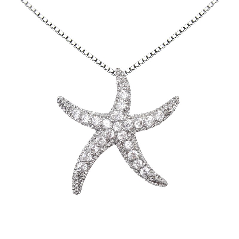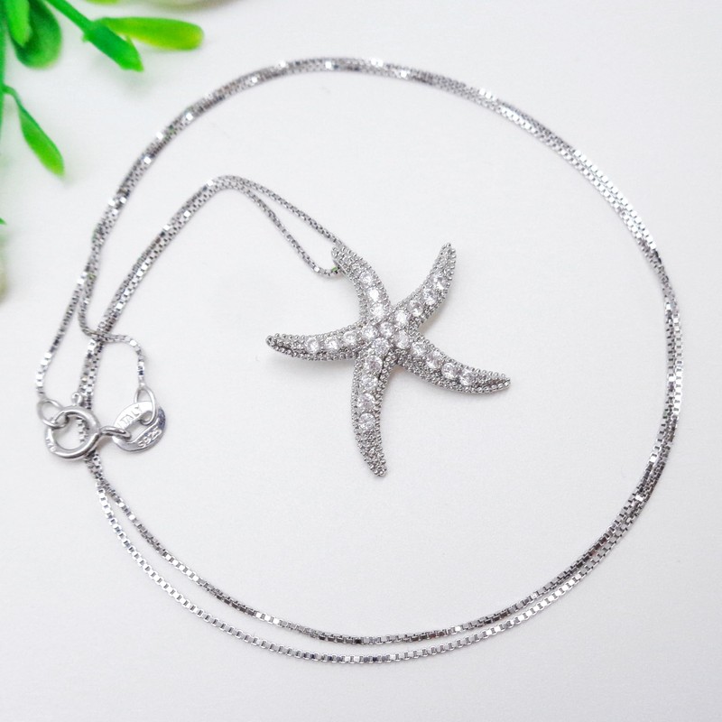 - DESIGN: Fashion 925 Sterling Silver Chain Starfish Star shaped Zirconia Pendant Necklace. High quality Sterling Silver Chain Jewelry will always be sparkly, it can keep for a long time. COMFORTABLE TO WEAR.