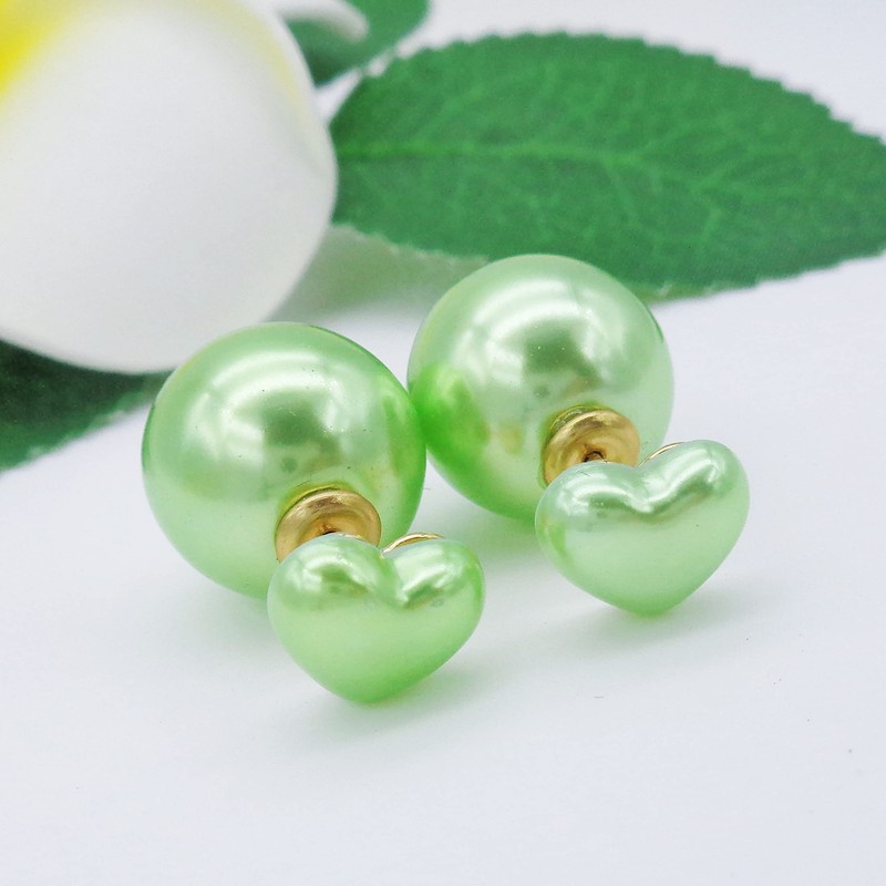 Hiqmic 925 Sterling Silver Post Double-sided Earrings Heart Round Pearl Ear Stud White Gold Plated Fashion Jewelry Gifts for Women, WA90212 Green