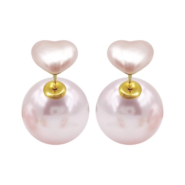 Hiqmic 925 Sterling Silver Post Double-sided Earrings Heart Round shaped Pearl Ear Stud for Women Fashion White Gold Plated Jewelry Gifts, WK90212-G Light Pink