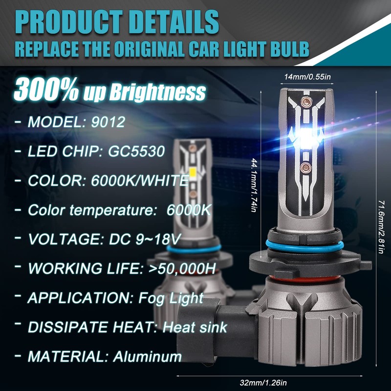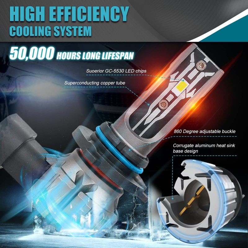 - [Super Long Lifespan]: This Hir2 9012 Headlight Bulb with efficient spacing and cold ressed aluminum heatsink ensures maximum LED bulb life, improving Hir2 9012 headlamp lifespan in more than 300%(up to 50, 000 h)