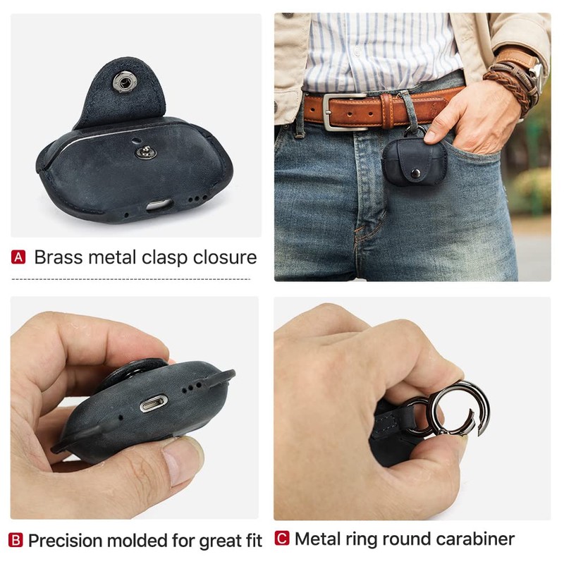 - ✨Considerate anti-lost design - Our protective leather earphone case is specially designed for Air Pods Pro 2nd Generation earphones. Precise cut-out charging port accessible and it can also support the wireless charger. Also with strong metal snap closure with secured carabiner, it is safe and comfortable for your daily & outdoor use, and no worry about losing your headphones.