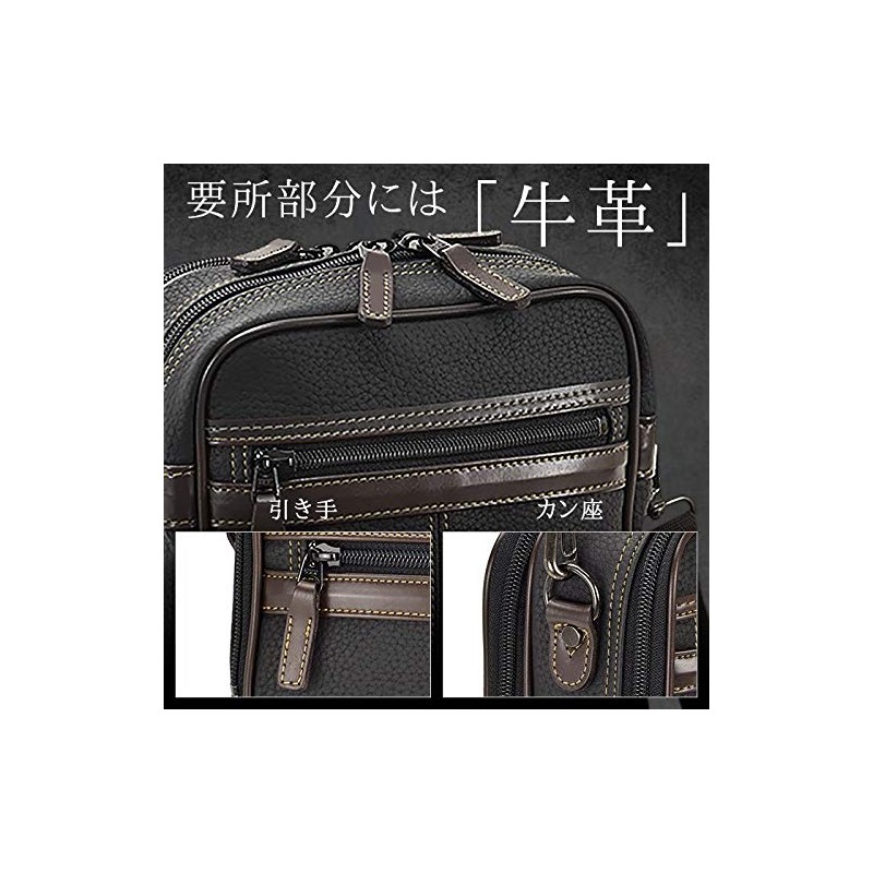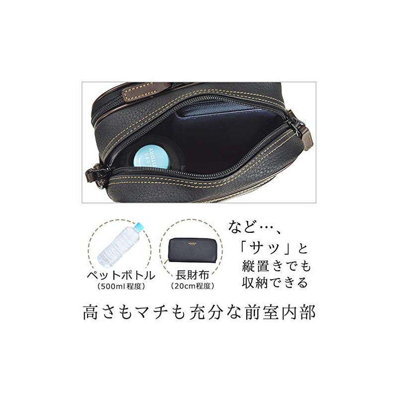 - A traditional shoulder bag that is like a gentleman carrying around around around town. The overall product is made of shrink grain synthetic leather that gives a sense of calm and luxurious impression. Durable cowhide leather is used for the handles that are easy to put on the load. ◆ Supports A5 files. 2 room specifications consisting of the front and rear room with a thin gusset. Stores tall plastic bottles and magazines vertically and neatly