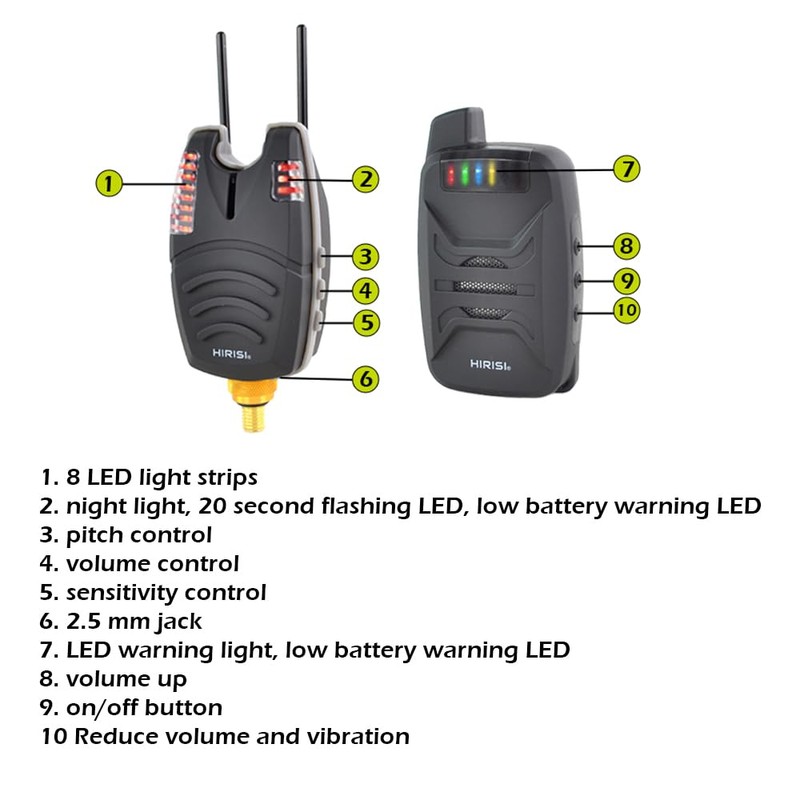 Hirisi Tackle Waterproof Carp Fishing Bite Alarm with Ear Hook 4+1