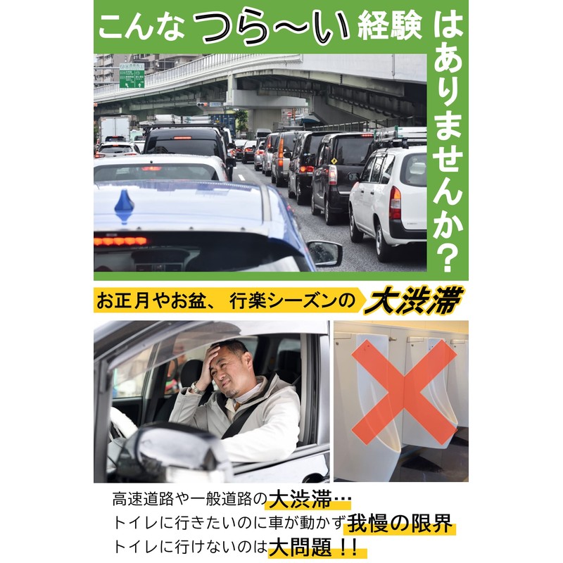 - ✅高速道路などでの長距離ドライバーにとって尿意は大問題。特に首都高や行楽シーズンに渋滞にはまってしまうと長い間パーキングエリアまで到達できずにつらい思いをした方もいるのでは。この男性用の携帯トイレ(尿瓶・尿器)があれば、車でも緊急時に用が足せます。頻尿の方でもお守り代わりに携帯しておくと安心してドライブを楽しめます。またシンプルかつおしゃれで尿瓶のように目立たないので見られても恥かしくないデザインとなっております。