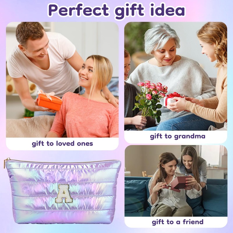 - 【Unique Design】 Each bag features a mesmerizing iridescent metallic sheen in a soft pastel purple, adding a touch of glamour and elegance to your beauty routine.The quilted puffer material not only looks chic but also provides durability and protection for your belongings, ensuring your items stay safe and stylish.