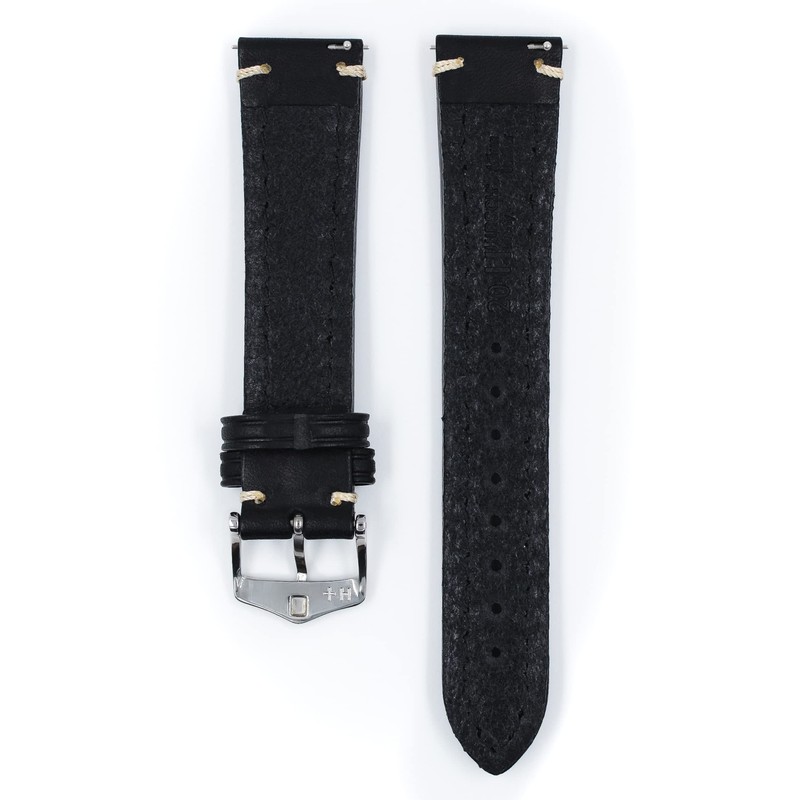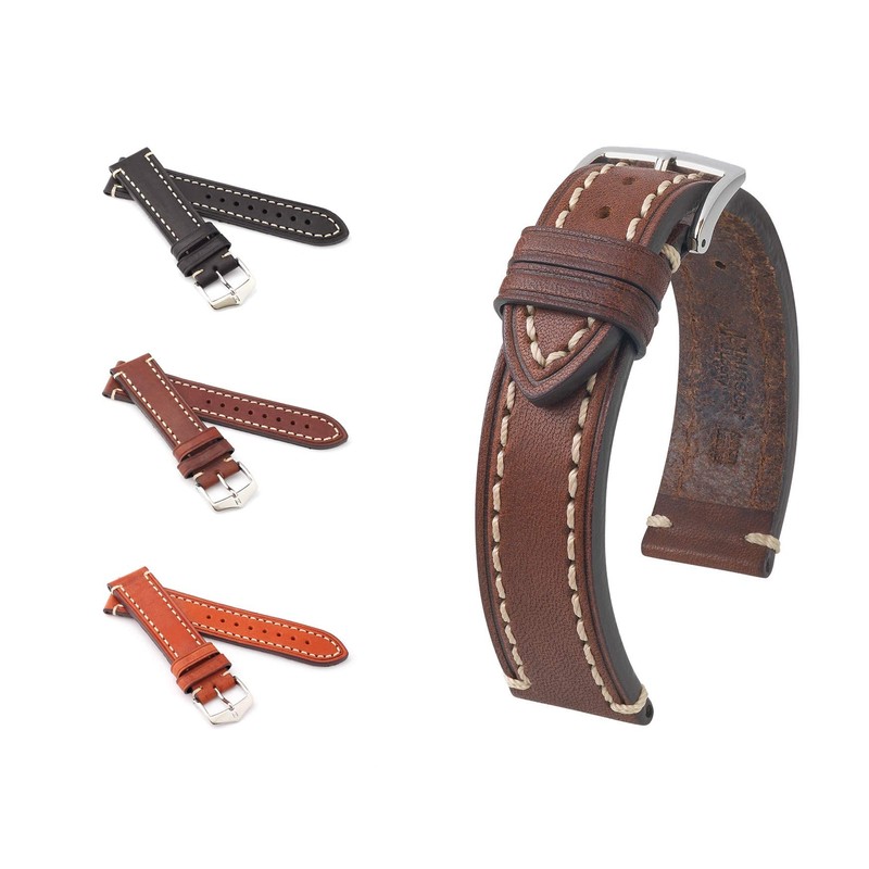 - Thanks to the robust design, the emphasised contrasting quilted seam in manufacture style and the decorative latch seam on the clasp and on the watch base, the watch strap fits perfectly for sporty chronographs and vintage watches. The band is well suited for people with "normal" wrists.